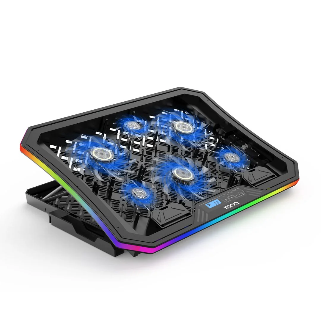 کولپد منحصربهفرد تسکو مدل GCLP 3150، با ابعاد 415*300*33 میلیمتر و وزنی حدود 1170 گرم دارد و با ترکیبی از صفحه فوقانی از آلیاژ و بدنه ABS پلاستیکی ساخته شده است.این ترکیب یک ابزار سبک و مقاوم خلق کرده است که تبدیل به همراه مطمئن شما در ماجراجوییهای گیمینگ خواهد شد که این کولپد متناسب با لپتاپهای با سایز 10 تا 19 اینچ است.با وجود 12 LED ( هر فن 2 LED) و 10 حالت رنگارنگ LED نمایی رؤیایی به میزتان میبخشد که علاوه بر این، با 6 حالت متنوع چرخش فن میتوانید بهتناسب با بازیهایتان، تنظیمات مناسبی را برای خنککردن لپتاپ انتخاب کنید.در پشت کول پد با مکانیسم دوتکه تنظیم شیب، میتوانید شیب کول پد را تنظیم کنید و به این صورت لپتاپ خود را در شیب دلخواهتان در 8 سطح قرار دهید و GCLP 3150 تعادل خوب و بدون لغزندگی در اختیار شما قرار میدهد.