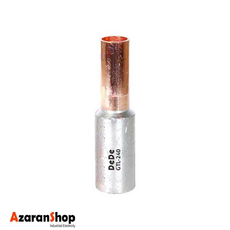 لوله ورودی کابلشو توسط درپوش پلاستیکی مسدود شده است تا گریس به بیرون از لوله تراوش ننماید. تکنولوژی اتصال مس به آلومینیوم، “جوش اصطکاکی” می باشد. در کابلشو بیمتال های DeDe Electric Group ، قبل از سوراخ کاری قسمت آلومینیومی و فورج و پانج سر مسی، جوش اصطکاکی ایجاد می گردد و پس از آن مراحل سوراخ کاری، فورج، پانچ، … صورت می گیرد. با توجه به این فرآیند تولید، اتصال نا گسستنی مس به آلومینیوم کابلشوی تولید شده نهایی تضمین شده است، زیرا اتصالات سست در حین پروسه های پس از جوش اصطکاکی، خود به خود نمایان و از چرخه تولید حذف می گردند. این کابلشو ها در سایز های مختلف، جهت ورودی کابل آلومینیومی از سطح مقطع ۱۶ الی ۵۰۰ میلیمتر مربع عرضه می گردد. بر روی کابلشو ها، سایز کابل ورودی به کابلشو بیمتال بر حسب میلیمتر مربع، و قطر سوراخ کابلشو بر حسب سایز پیچ متریک در استاندارد ISO درج شده است.