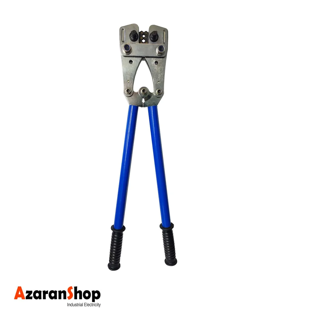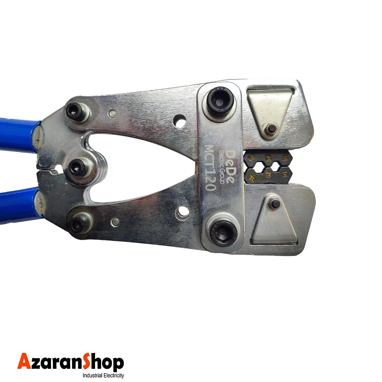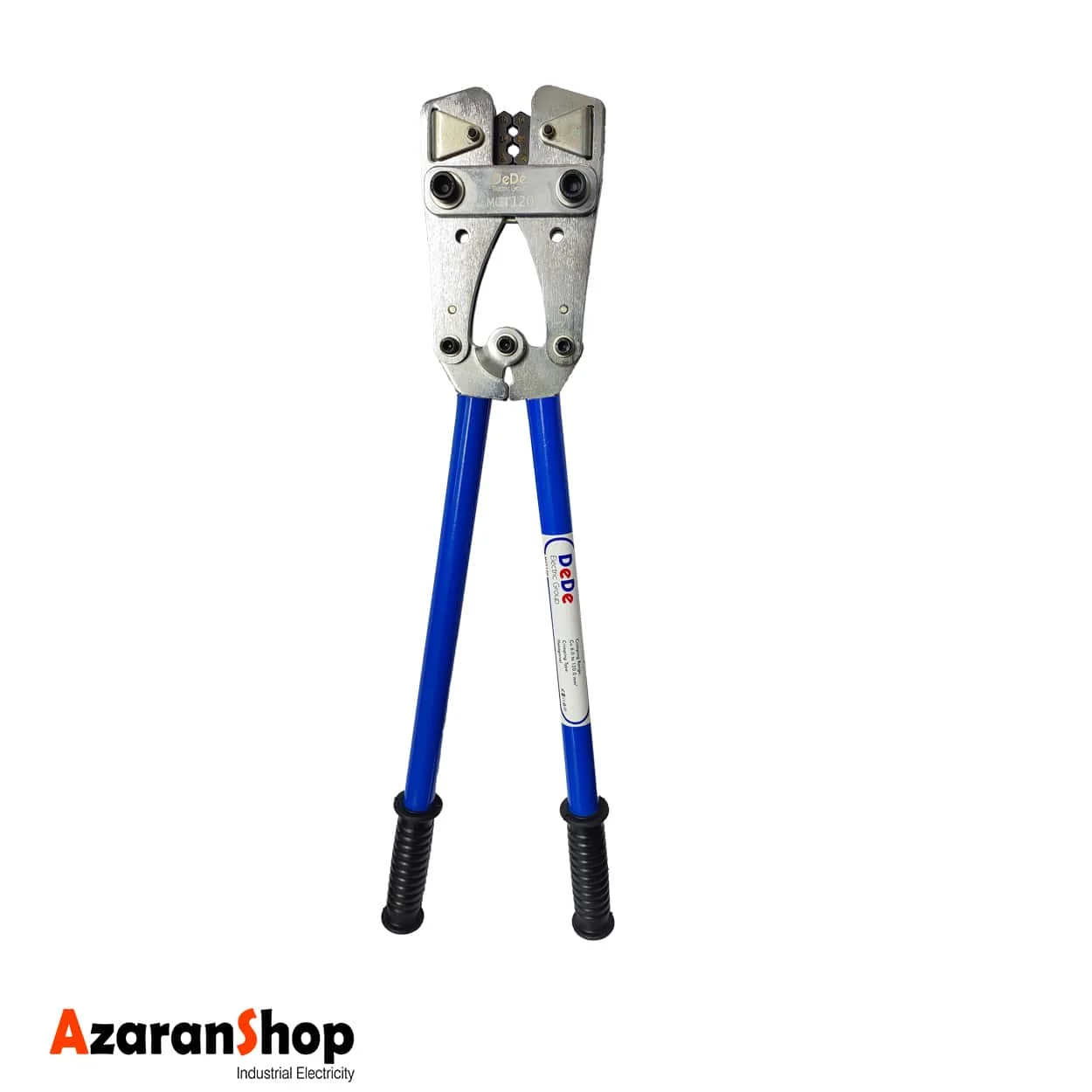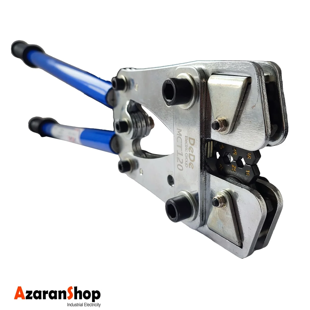 ابزار پرس مکانيکي با کد MCT120 جهت نصب اتصالات کابلشو/رابط مسي از سايز (سطح مقطع) 6 الي 120 ميليمتر مربع و کابلشو/رابط آلومينيومي از سايز 16 الي 95 ميليمتر مربع به کابل مورد اســتفاده قرار مي گيرد. نيروي پــرس در اين ابزار از طريق نيروي دست اپراتور تأمين مي گردد. اين ابزار حاوي 9 جفت قالب مي باشد که همگي در قسمت سر ابزار، و به صورت يک تکه از جنس فولاد که حول محوري مي چرخد تعبيه شد است. جهت استفاده از قالب با سايز مناسب، با فشار بر روي فنري که بر روي سر ابزار تعيبه شده قالب ها آزاد شده، سپس با چرخاندن محور قالب ها، قالب با سايز مناسب انتخاب مي گردد. ضروري است هنگام پرس، دو سايز قالب انتخاب شده در هر دو قسمت ابزار يکي باشد، لذا انتخاب قالب با سايز مناسب بايد به صورت مجزا جهت هر طرف صورت گيرد.