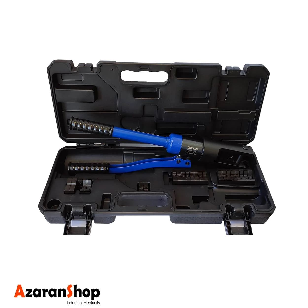 ابزار پرس هیدرولیک کابلشو با کد ۳۰۰ HCT جهت نصب اتصالات کابلشو /رابط مسی از سایز (سطح مقطع) ۱۰ الی ۳۰۰ میلیمتر مربع و کابلشو /رابط آلومینیومی از سایز ۱۶ الی ۲۴۰ میلیمتر مربع به کابل، مورد استفاده قرار می گیرد. در ابزار پرس هیدرولیک کابلشو و رابط مسی ، از روغن جهت انتقال نیروی مکانیکی دست اپراتور به اجزاء متحرک ابزار (مانند شفت و پیستون) اسـتفاده می گردد.