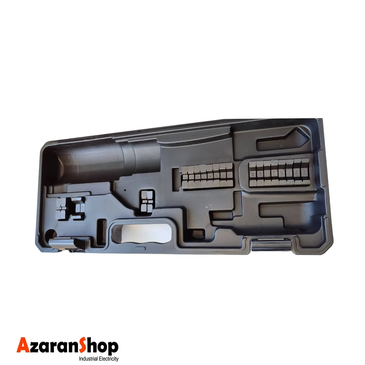 ابزار در جعبه ای قفل شـو از جنس پلاستیـک سـخت، به همراه ۱۲ عدد قالب پرس در سایز های گوناگون عرضــه می گردد. قالب با سایز مناسب طبق هر سطح مقطع کابل مورد استفاده می گیرد.