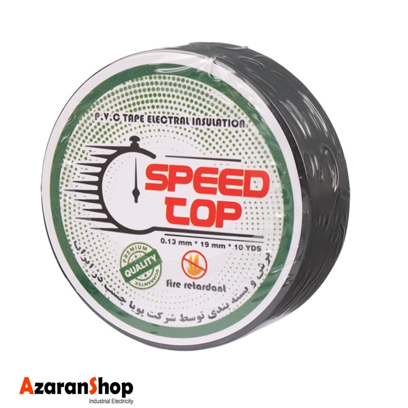 چسب برق مشکی SpeedTop تولید شده از فیلم (ورق نازک) پلی وینل کلراید (PVC) بسیار با کیفیت و از یک طرف آغشته به چسب فعال شونده در اثر فشار بر پایه لاستیک-رزین می باشد. مورد کاربرد چسب برق (لنت برق) جهت اتصال دو سیم و یا حفاظت مکانیکی و الکتریکی از روکش سیم و کابل آسیب دیده با ولتاژ عمکرد تا ۶۰۰ ولت (Uo : ولتاژ نامی بین فاز و زمین) می باشد.